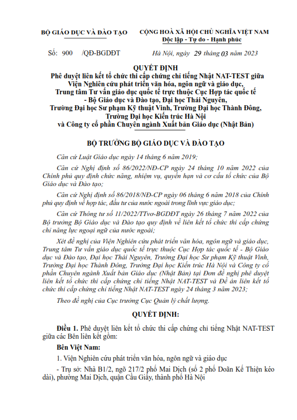 Liên kết tổ chức thi cấp chứng chỉ năng lực tiếng Nhật NAT-TEST đầu tiên được cấp phép tại Việt Nam